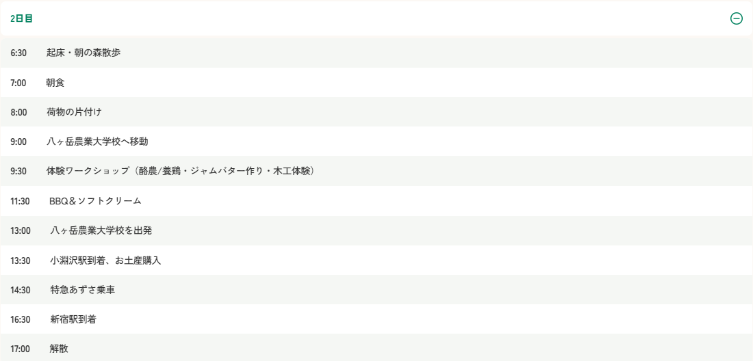 💁ご説明内容0. はじめに1. 申し込みから出発までの流れ🌱2. プログラム概要🚌3. 出発前の準備持ち物について🎒写真使用許諾について📷4. 集合/解散場所・時刻新宿駅集合/解散場所について5. 行程表6.その他よくあるご質問Q.どんな服装で行けばいいの?Q.雨具の準備は必要ですか?Q.どんなカバンで行けばいいの?Q.急な腹痛や風邪の場合の薬は?Q.水筒は持っていかないといけませんか?7.各種ご質問