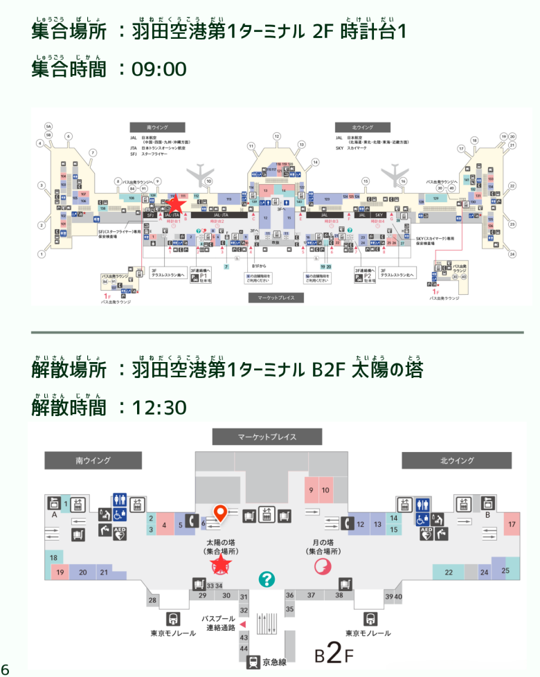 | 集合場所 | 羽田空港第1ターミナル 2F 時計台1 |