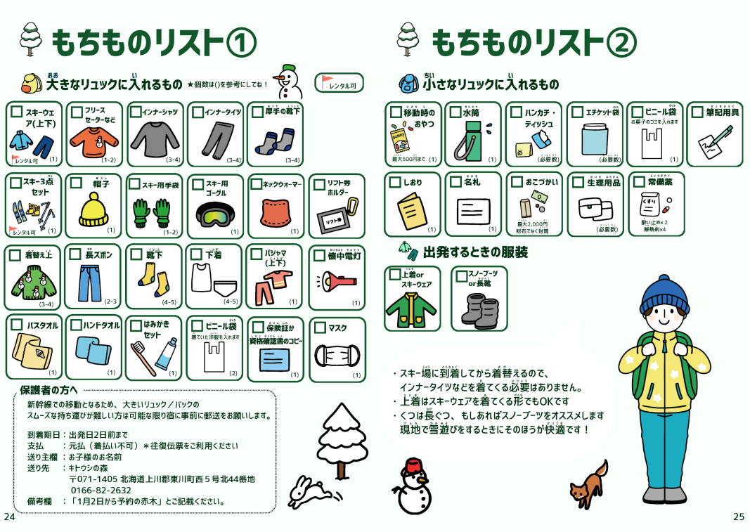 - しおり送付時に保護者向けの持ち物リストも同封致します。