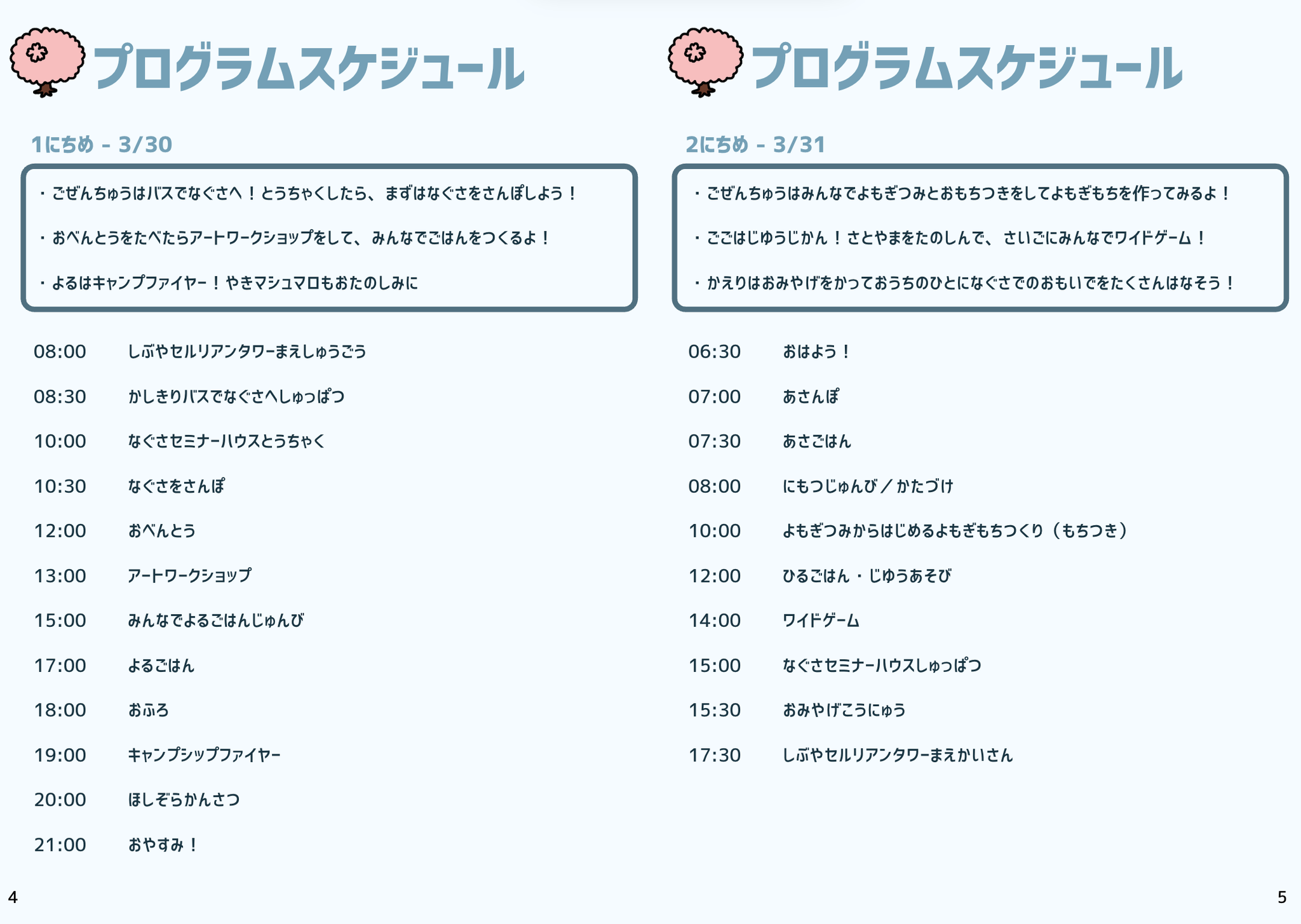 4. スケジュール&持ち物