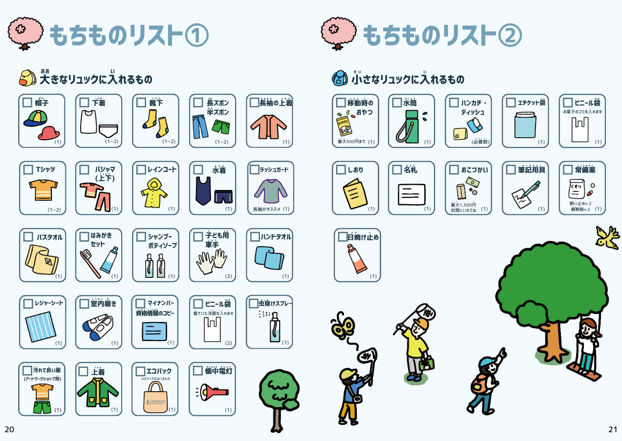 ①子ども向け持ち物リスト(しおり)