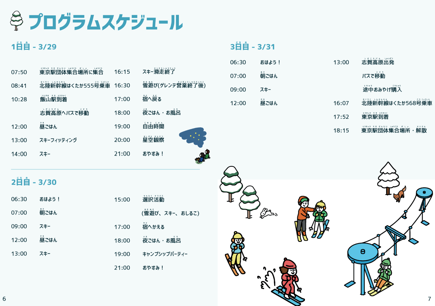 | 備考 | ・志賀高原プログラム総責任者/細田は志賀高原にてすべてのプログラムの受け入れをいたします。このため、本プログラムの往路集合については竹野が対応予定です。 |