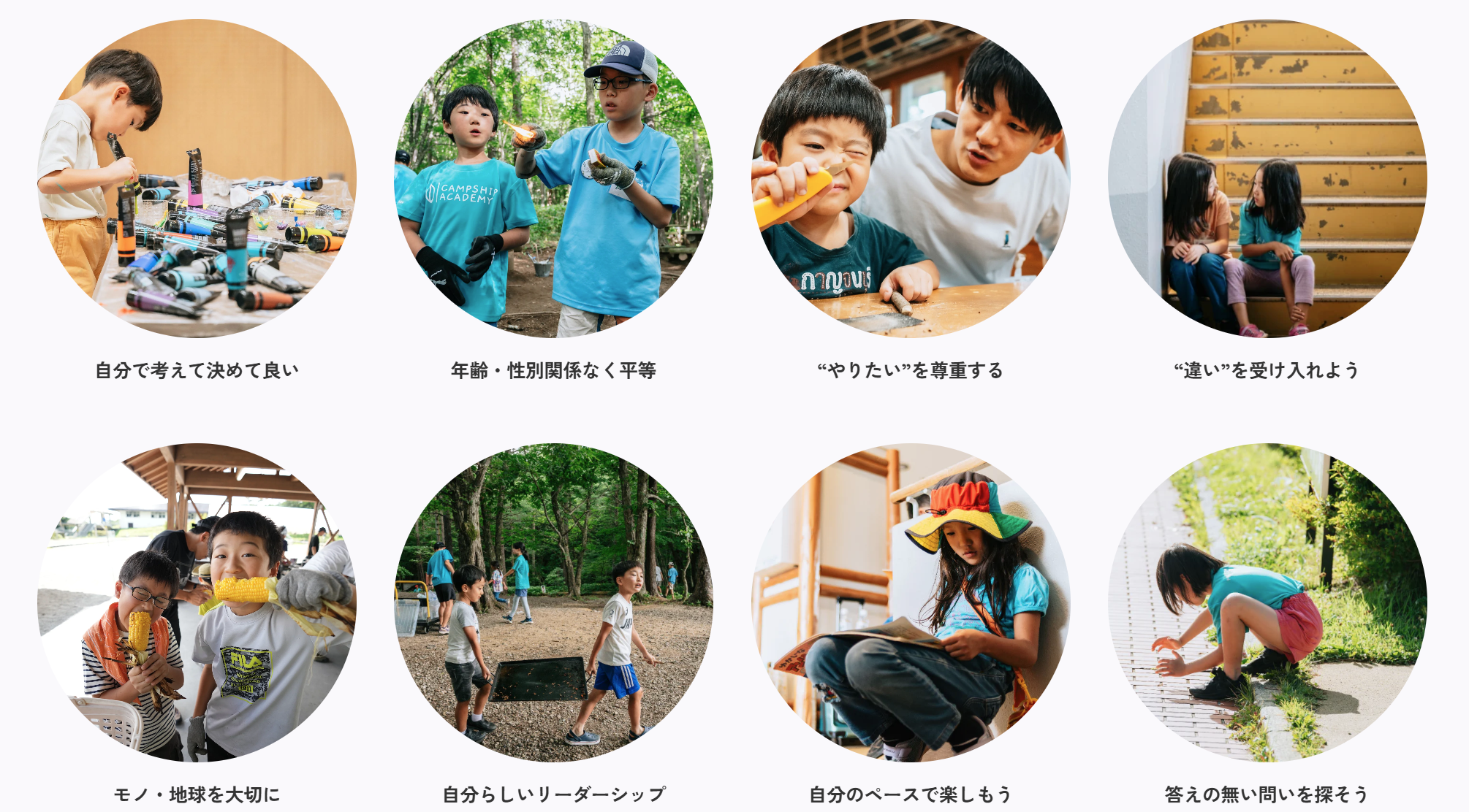 プログラムによっては食事作り・手伝い・片付けなどの集団活動が存在する他、集団でお風呂に入ります。リーダーもサポートしますが、未就学児のご参加者は、あらかじめご家庭での練習をお願いします(お風呂で体・頭を自分で洗う、タオルを洗う、絞るなど)